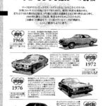 Toyota Mark II evolution timeline showing four generations from 1968-1980, displaying design changes from the original OHV engine model through…