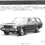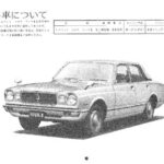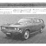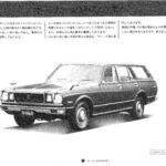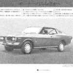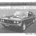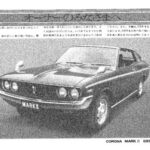 Toyota Corona Mark II promotional document featuring a detailed illustration of the vehicle with Japanese text explaining vehicle features and…