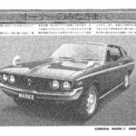 Toyota Corona Mark II GL promotional advertisement featuring the vehicle's exterior design and marketing text describing the car's features and…