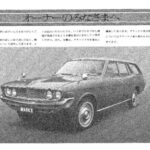 Owner's manual cover page for the Toyota Corona Mark II GL featuring an introductory message in Japanese and a photograph…