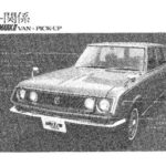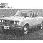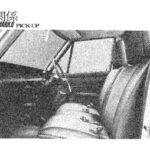 Interior layout diagram of Toyota Corona Mark II pickup truck showing dashboard, seats, door panels, and cabin components with Japanese…