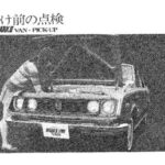 Pre-departure inspection points for the Toyota Corona Mark II Van and Pick-up, showing a person performing visual inspection of the…