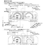 Instrument cluster gauge layout and component identification diagram showing speedometer, odometer, fuel gauge, water temperature gauge, and various warning lights…