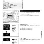 Interior equipment usage instructions covering clock operation with time setting procedures using H, M, and SET buttons, plus table of…