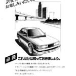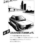 Owner's manual introduction page featuring a Toyota Mark II sedan illustration with urban cityscape background and Japanese text promoting safe…