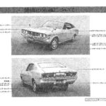 Toyota Corona Mark II GL vehicle feature identification diagram showing exterior components and lighting systems from front and rear views…