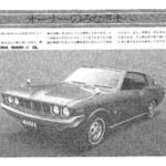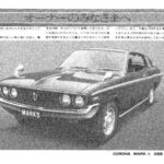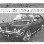 Toyota Corona Mark II GL promotional advertisement featuring the vehicle's exterior design and marketing text describing the car's features and…