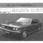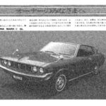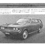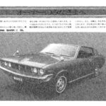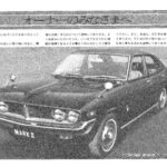 Toyota Corona Mark II promotional document featuring a detailed illustration of the vehicle with Japanese text explaining vehicle features and…