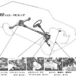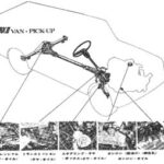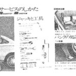 Self-service car maintenance procedures showing jack and tool storage locations in the Corona Mark II hardtop trunk area along with…