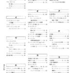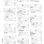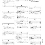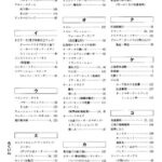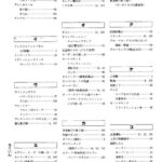 Index page showing alphabetical listing of vehicle components and maintenance procedures with corresponding page numbers, organized by Japanese syllabary sections…