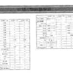 Technical specifications chart showing engine dimensions, performance data, and various measurements for different Toyota Corona Mark II trim levels including…