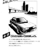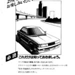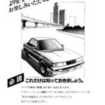 Japanese automotive advertisement or promotional material featuring a family of three (two adults and one child) standing on what appears…