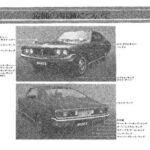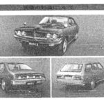 Toyota Mark II model introduction page showing three different body styles (sedan, coupe, and wagon variants) with exterior styling details…