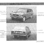 Toyota Mark II model showcase page displaying three different views of the Mark II vehicle with Japanese text labeling various…