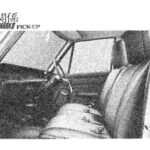 Interior view of Toyota Corona Mark II Pick-up showing front bench seat, dashboard, steering wheel, and cabin layout with various…