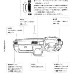 Vehicle maintenance tools and jack storage location guide showing the toolkit contents including wrenches, pliers, screwdrivers, and tire pressure gauge…