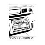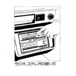 Radio and stereo system operation instructions showing the dashboard-mounted audio unit with control knobs, buttons, and proper hand positioning for…