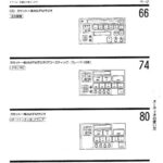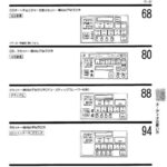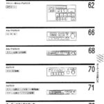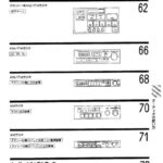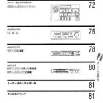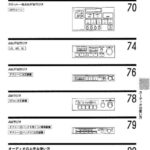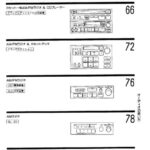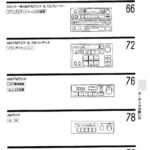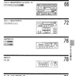 Audio system operating instructions index page showing control panel layouts and page references for various Toyota audio components including CD/cassette/AM-FM…