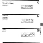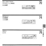 Audio system operation guide showing control panel layouts and page references for cassette/AM-FM radio, AM-FM radio, AM radio units, and…
