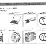 Toyota genuine accessories product catalog page showing various automotive accessories including driver kit, signal lights, emergency rope, windshield washer fluid,…