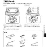 Tools and jack usage instructions showing the location of various automotive tools in the spare tire compartment and step-by-step procedures…