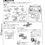 Tool and jack storage locations and procedures including tool bag contents, jack positioning and setup steps, and safety warnings for…