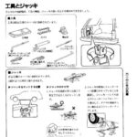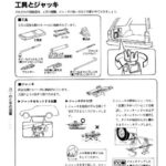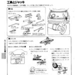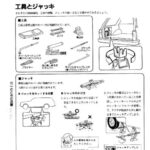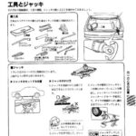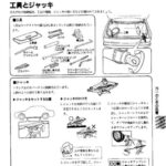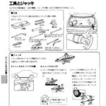 Tools and jack section showing storage locations, types of tools included (wrench, pliers, screwdriver, etc.), proper jack positioning points under…